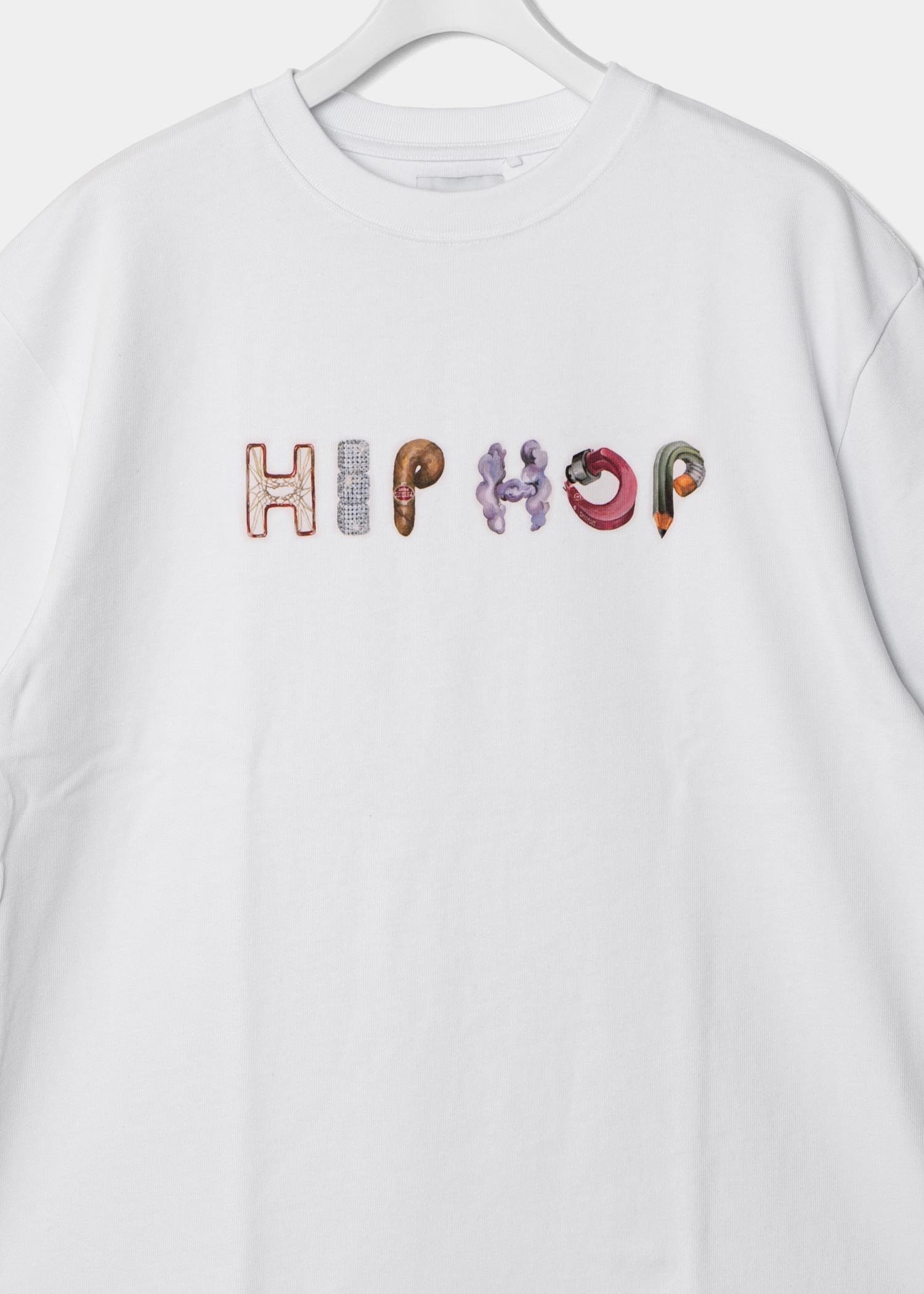 The emoji designs are by artist MAMI, and the word "HIPHOP" is placed on the chest.