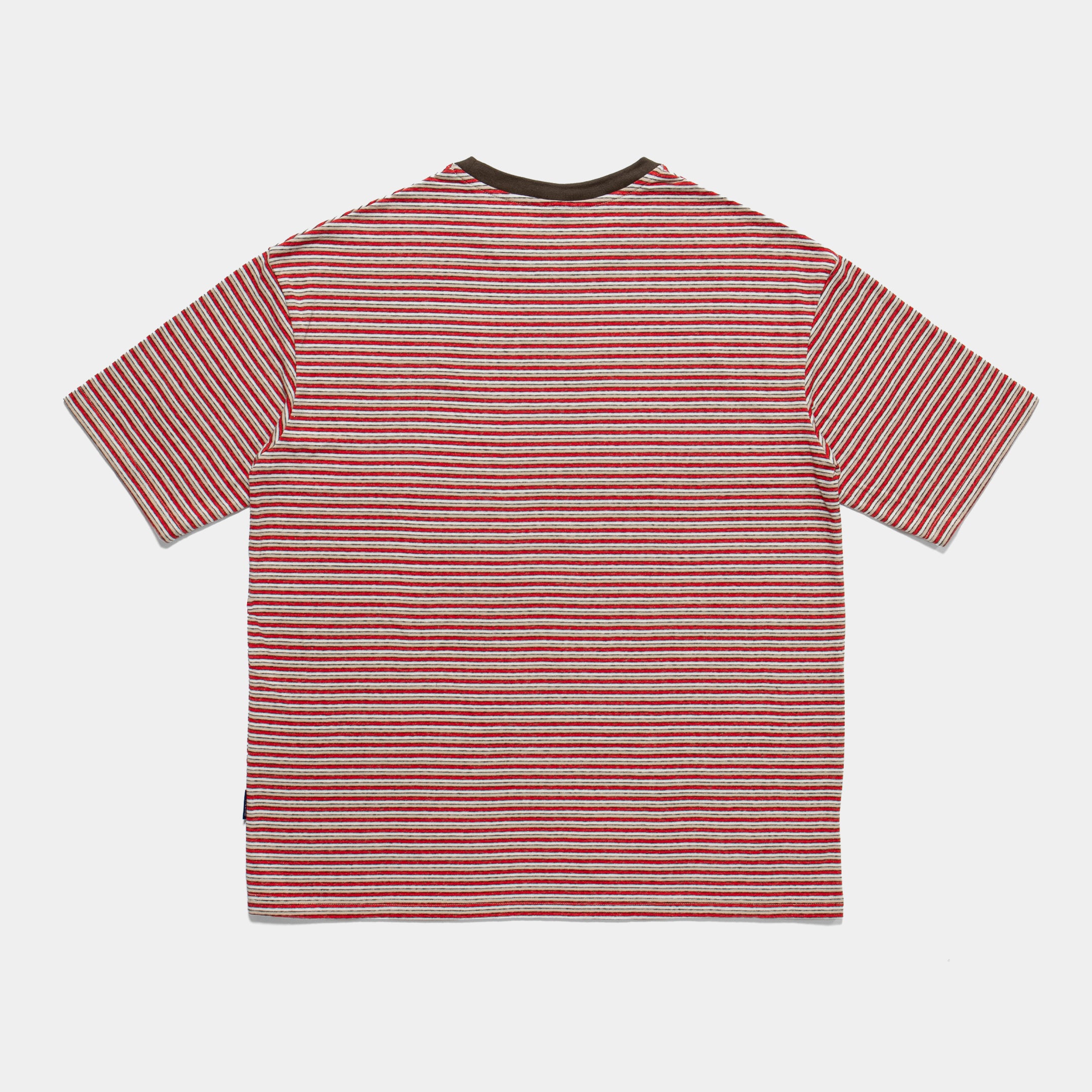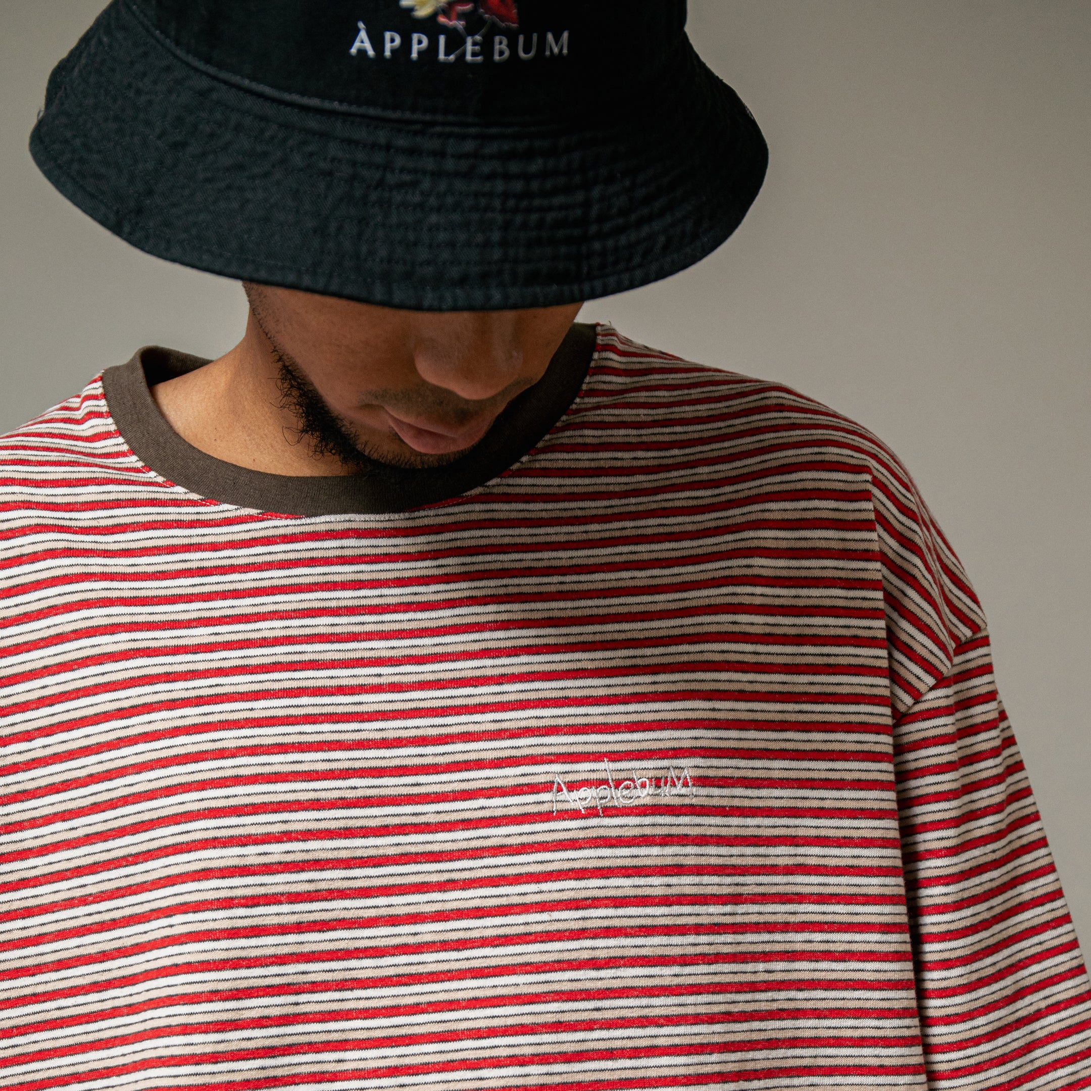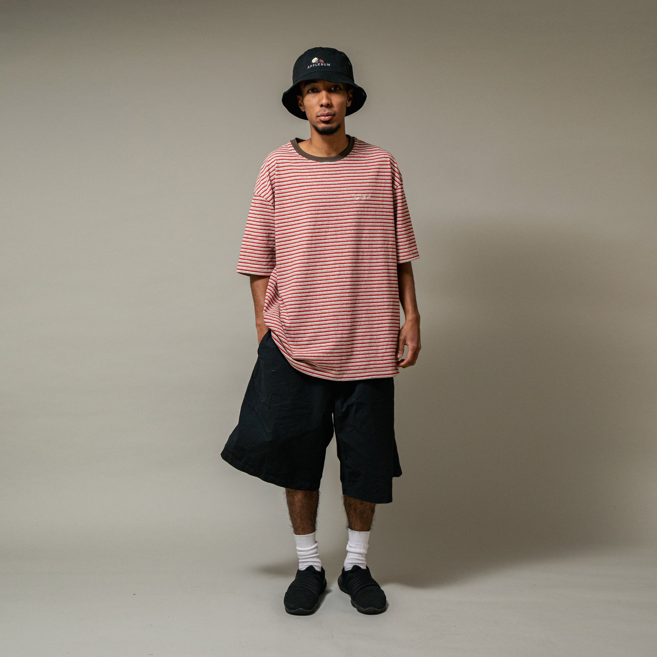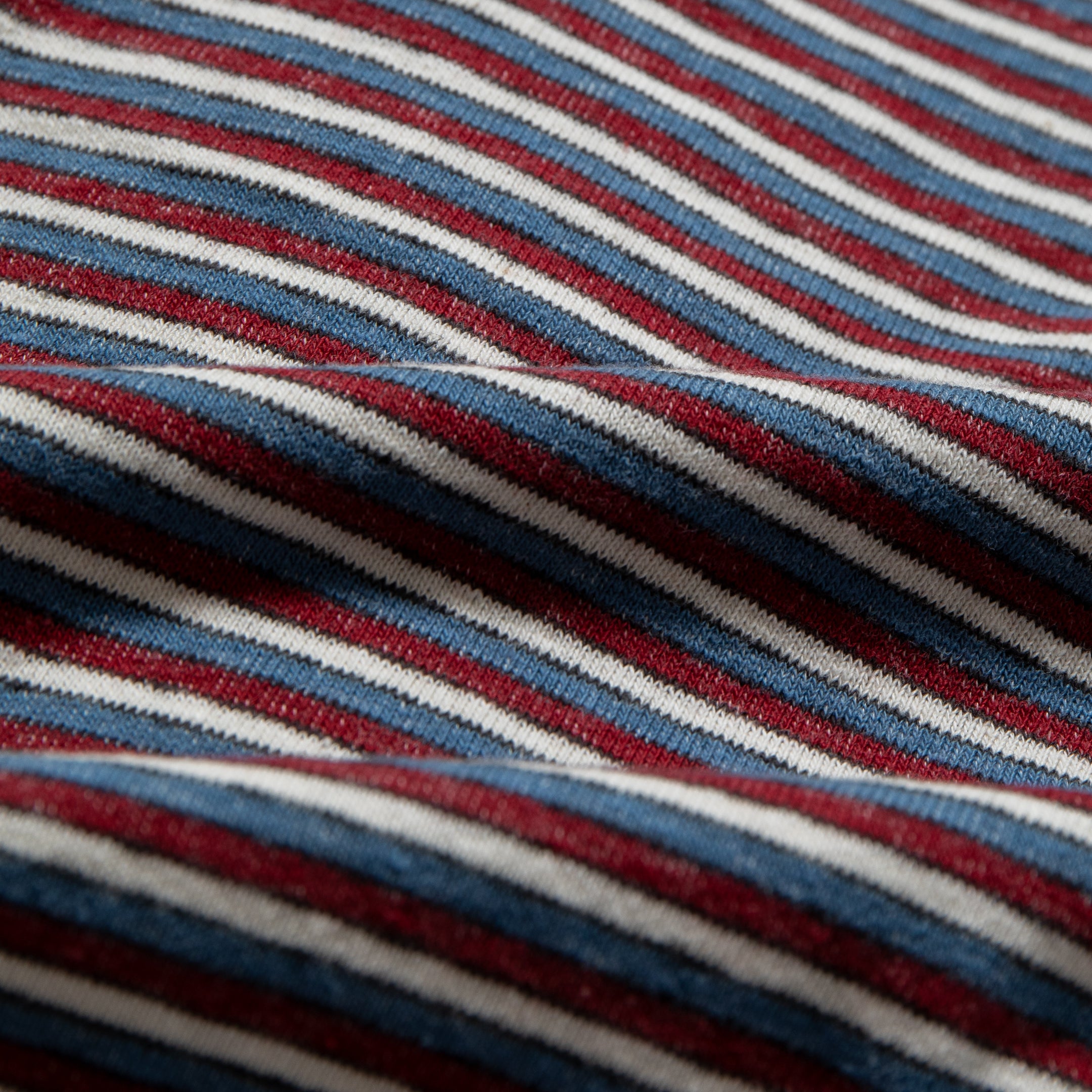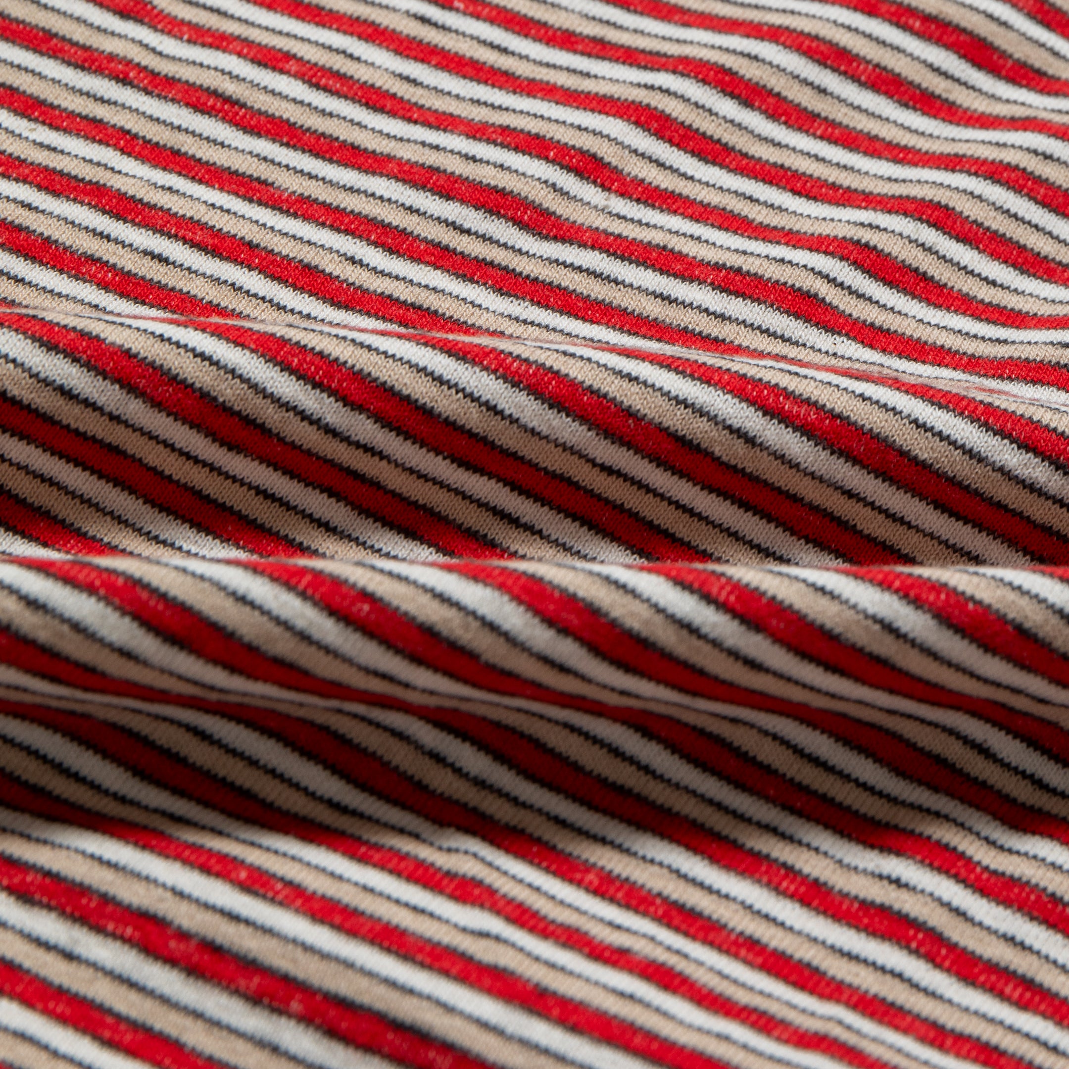 A striped T-shirt featuring a soft, pile-like brushed texture and natural unevenness.