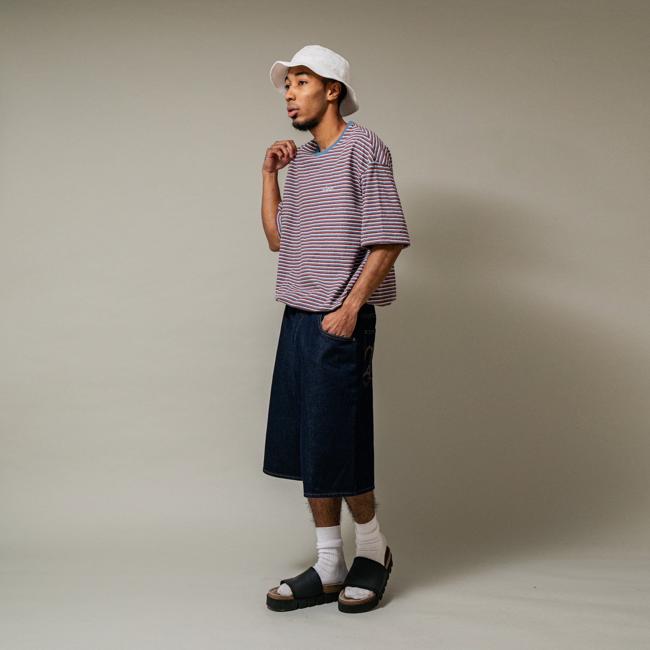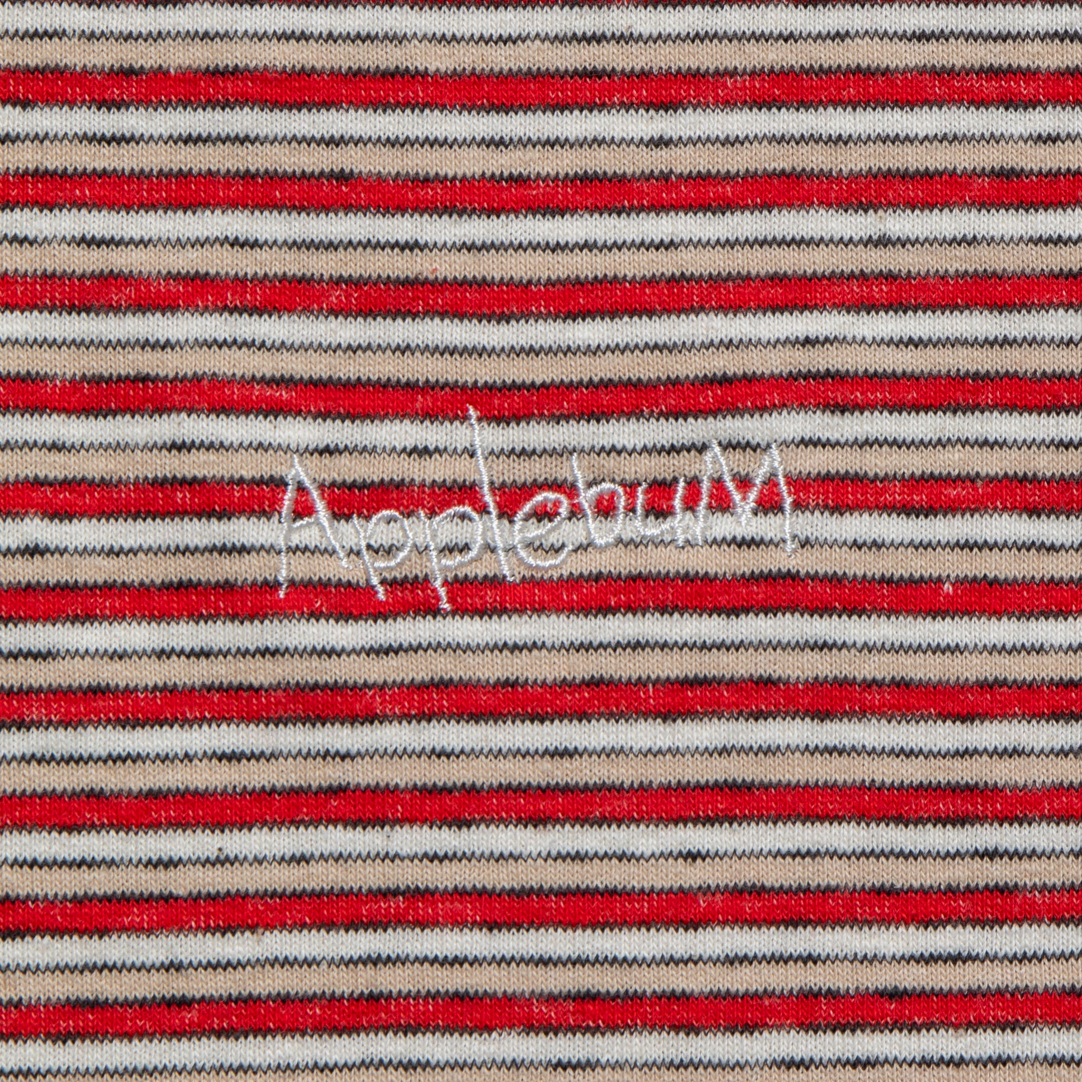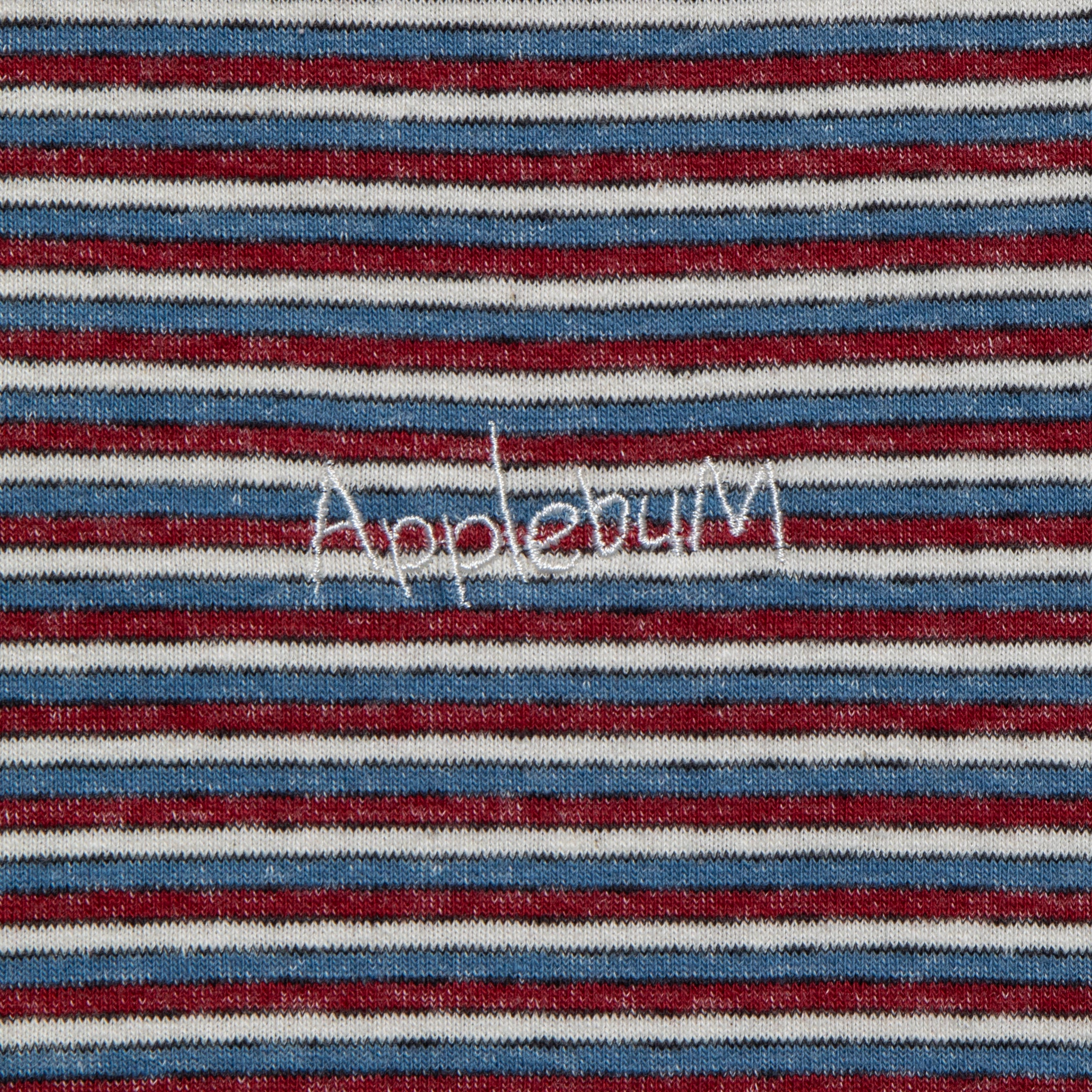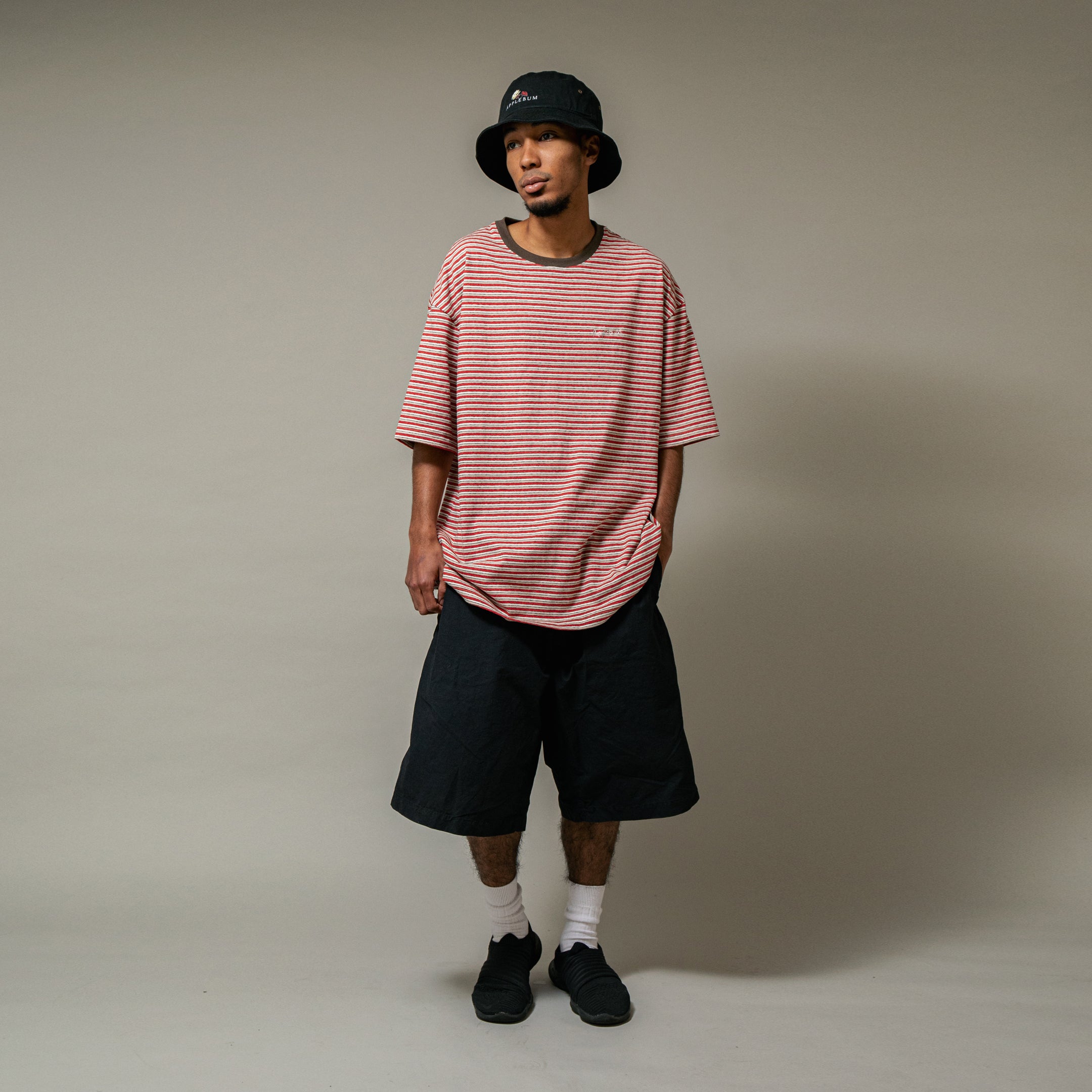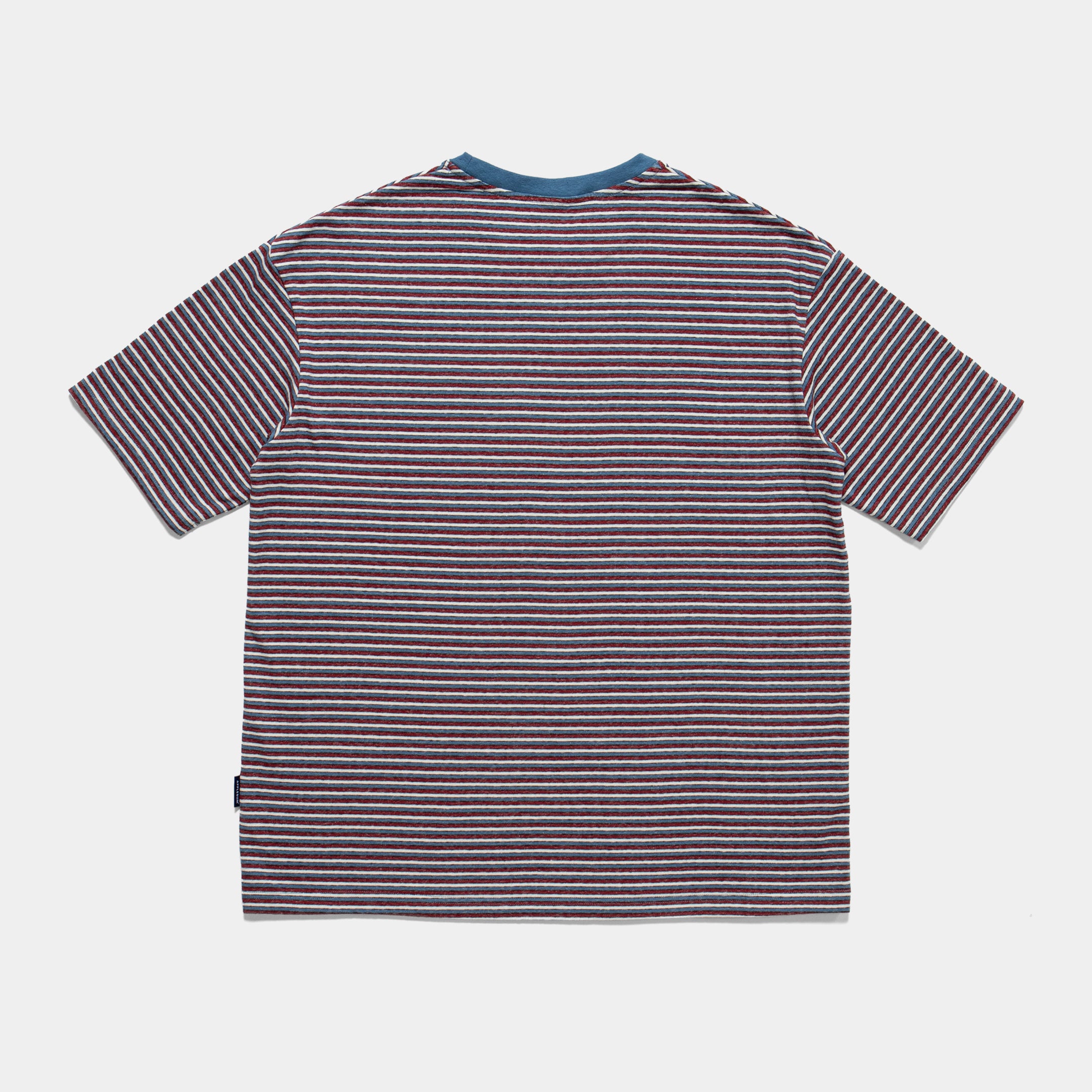 A striped T-shirt featuring a soft, pile-like brushed texture and natural unevenness.