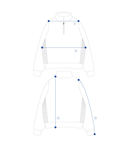 | ① Shoulder width | ② Chest width | ③Length | ④Sleeve length | |