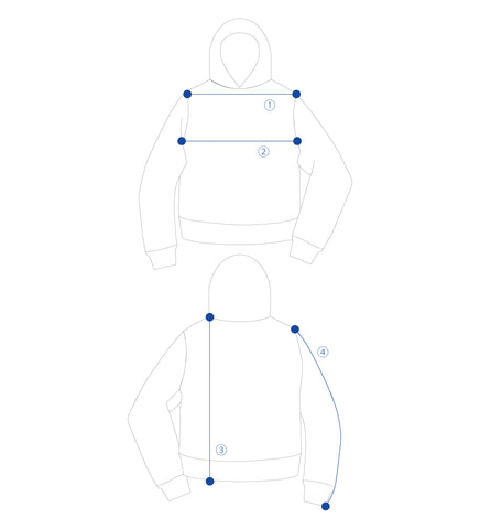 | ① Shoulder width | ② Chest width | ③Length | ④Sleeve length | |