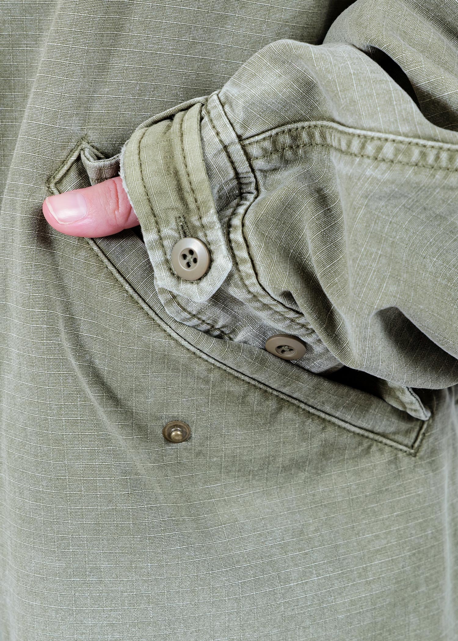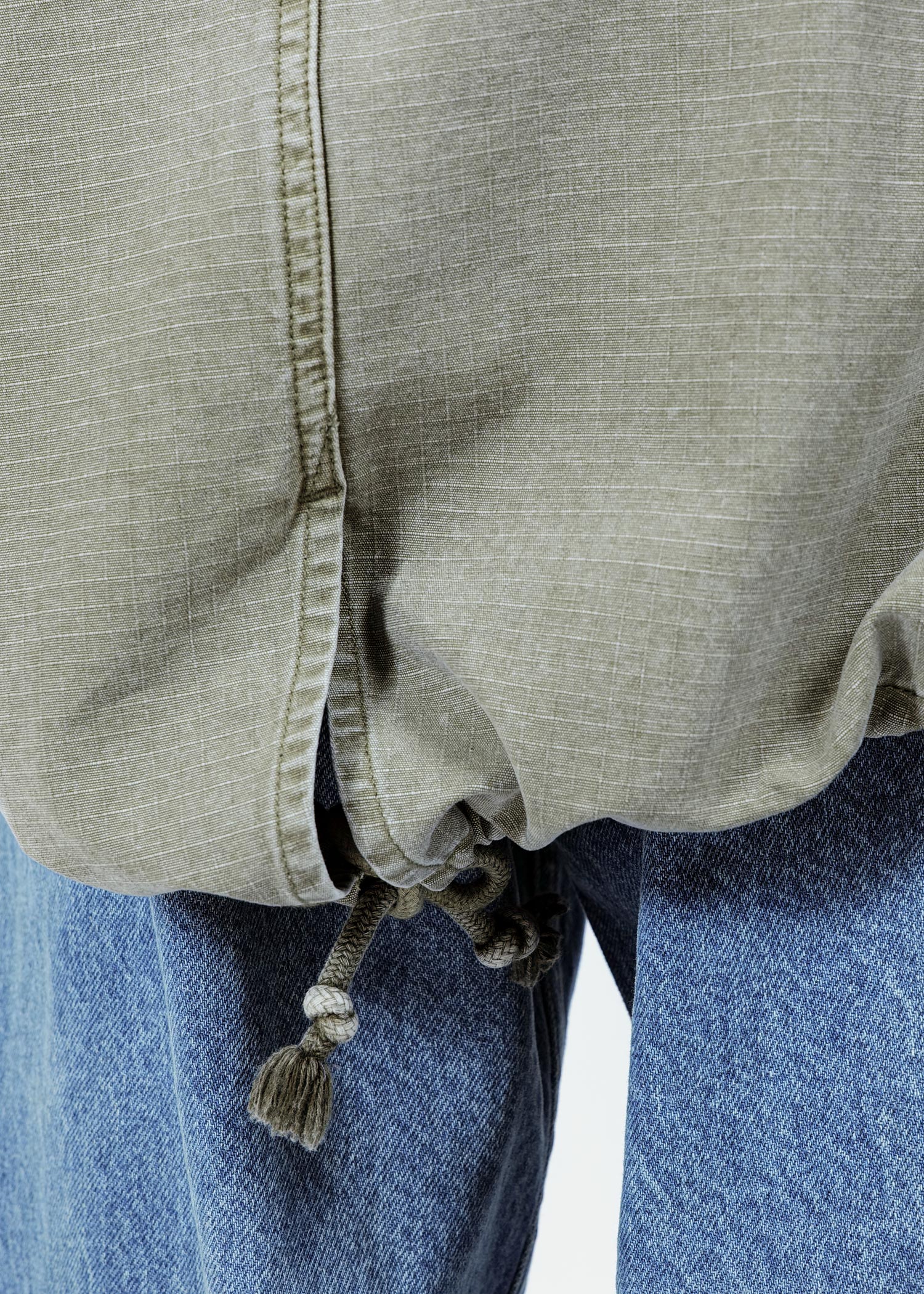 An M-65 fishtail jacket made from durable ripstop fabric.
