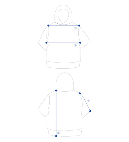 ① Shoulder width ② Chest width ③Length ④Sleeve length