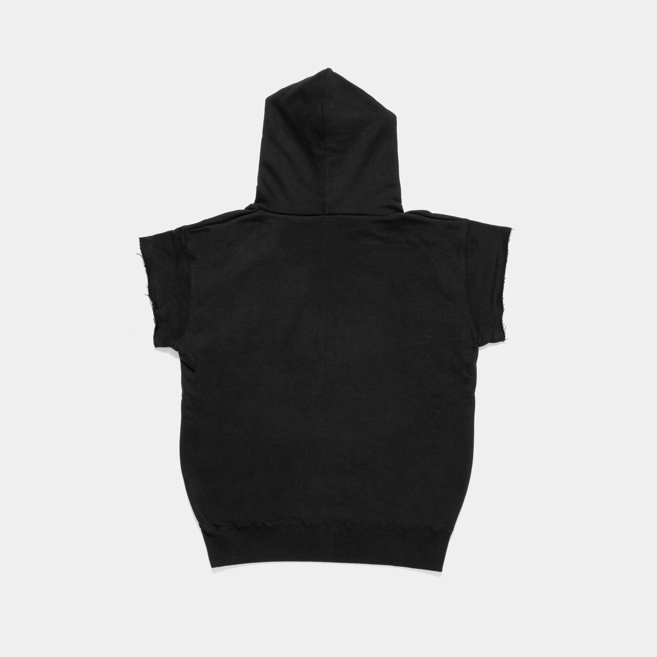 A cut-off sleeve hoodie with a sporty look.