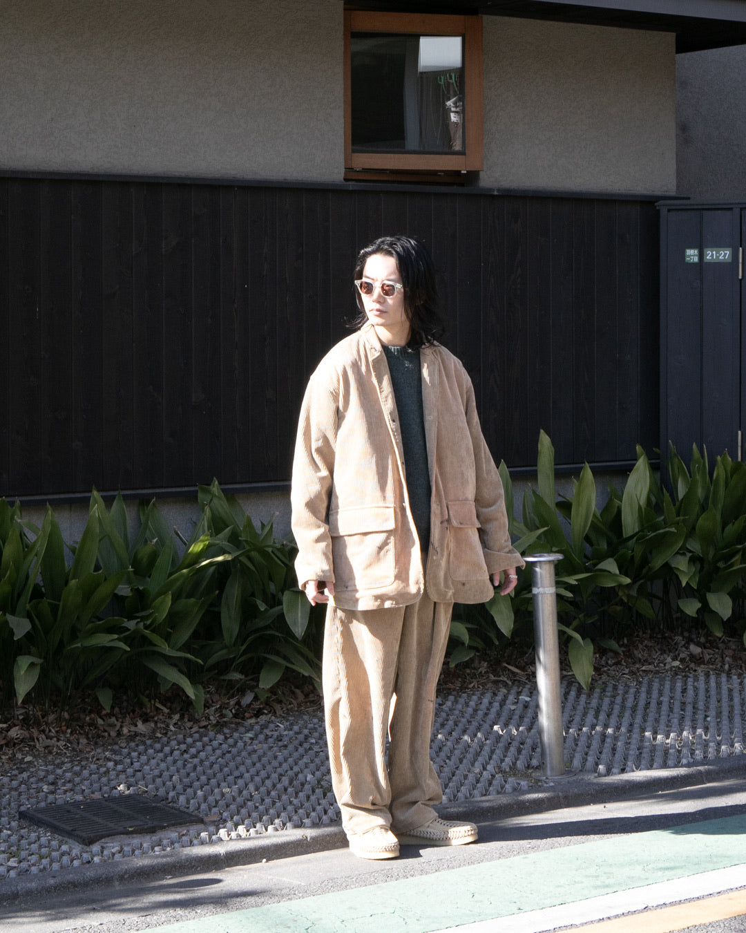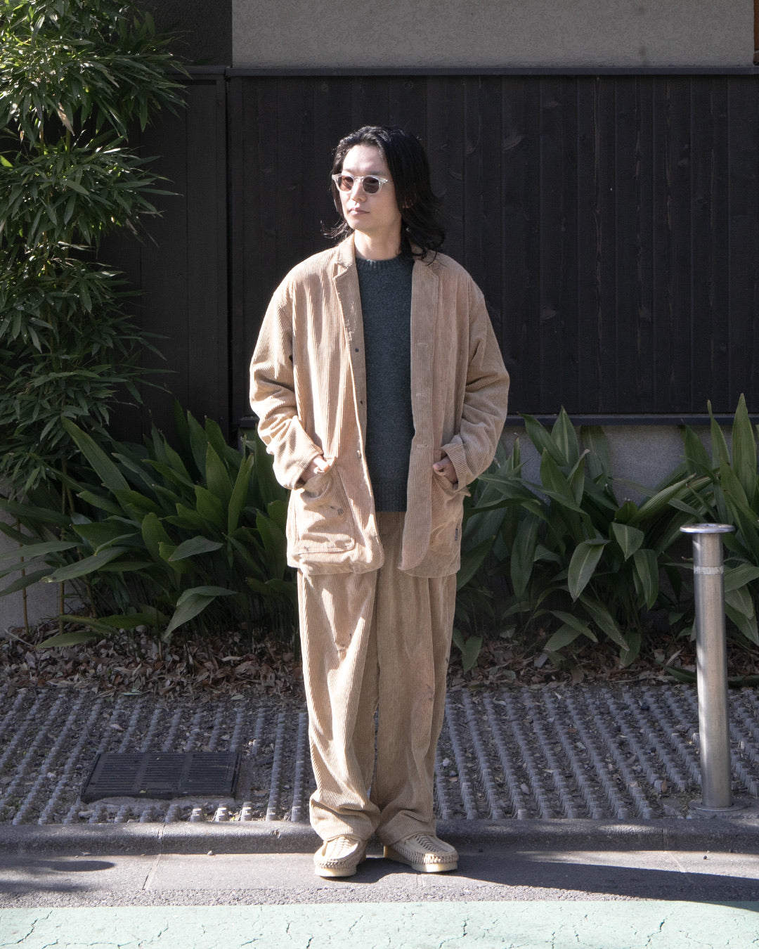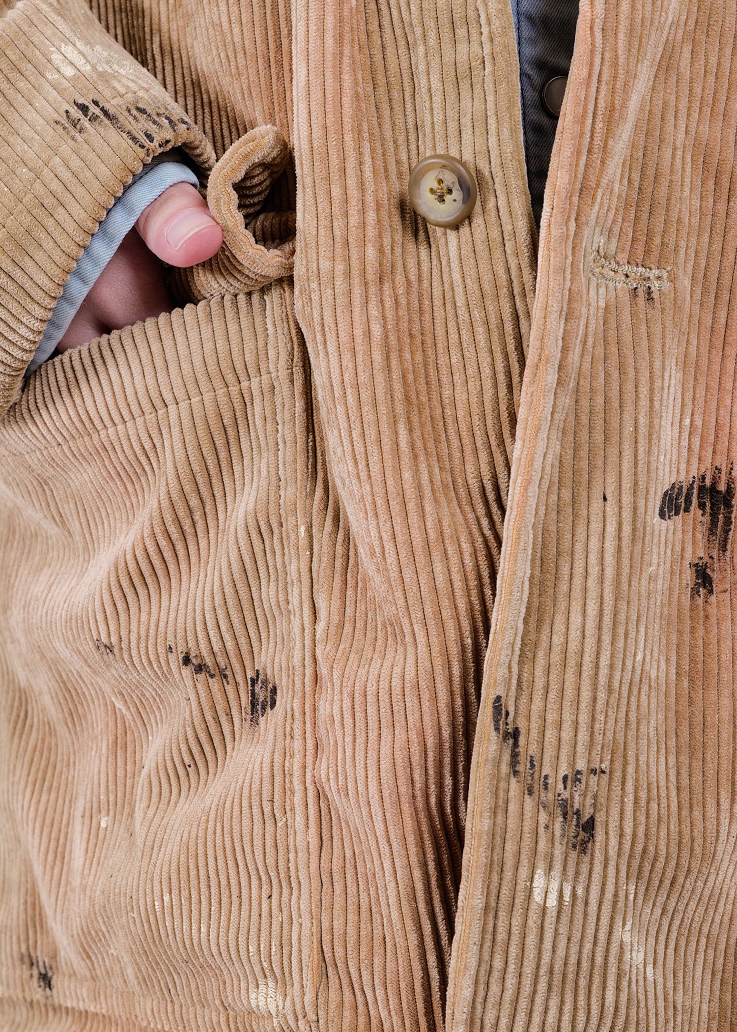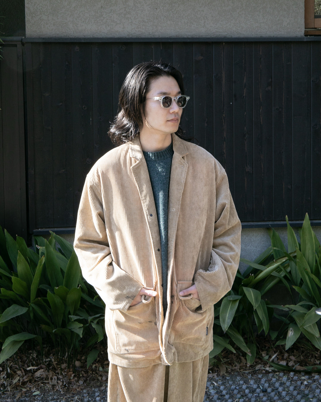A corduroy jacket featuring damage processing by the domestic processing studio "SHAVE co., ltd.".