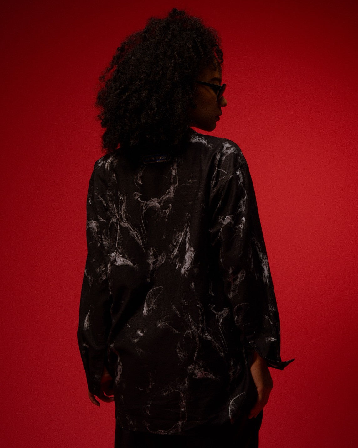 The tension, violence, and rebellious spirit of Death Row Records have been abstracted into a flickering smoke motif and reconstructed as art.