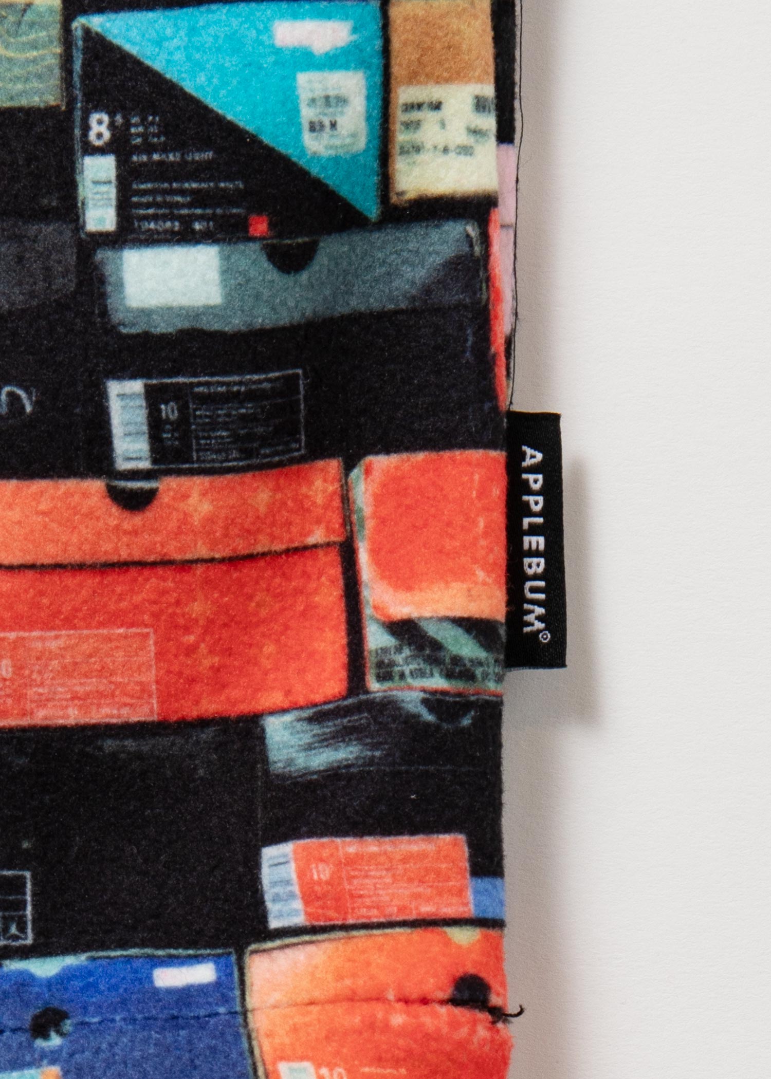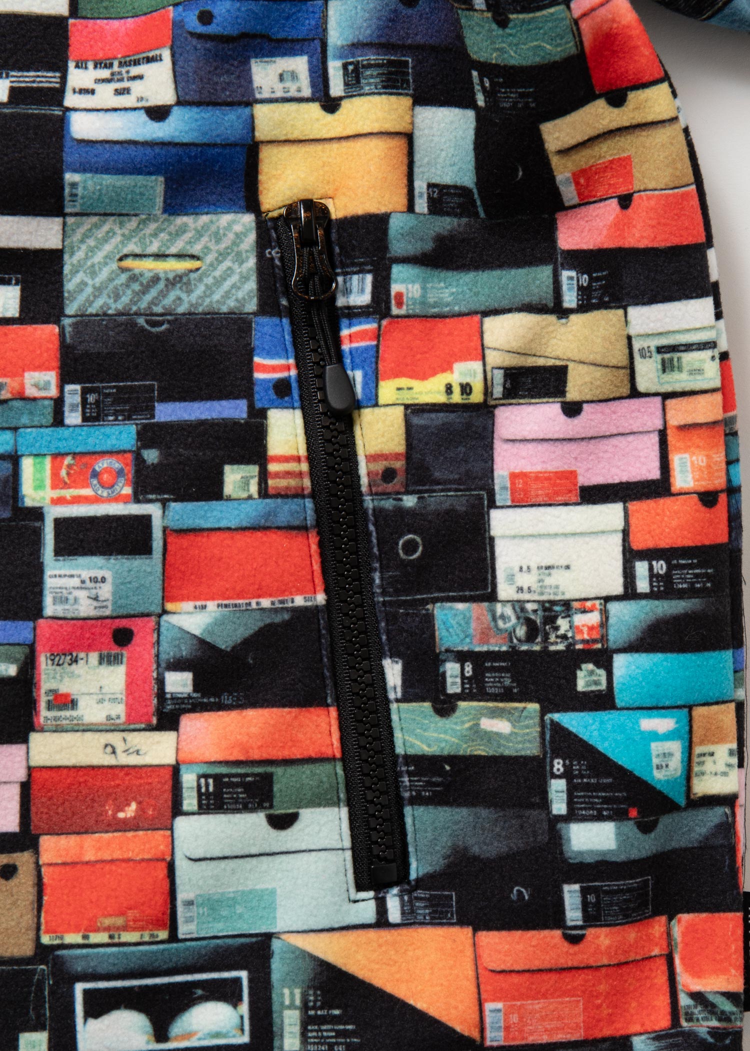 This fleece jacket boldly features the "KBAS" (Kickz Box All Stars) pattern, a classic stack of sneaker boxes that is one of APPLEBUM's most representative graphic designs.