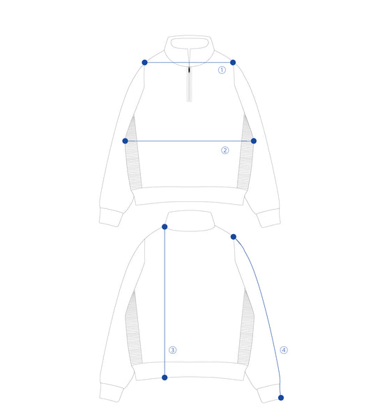 | ① Shoulder width | ② Chest width | ③Length | ④Sleeve length | |