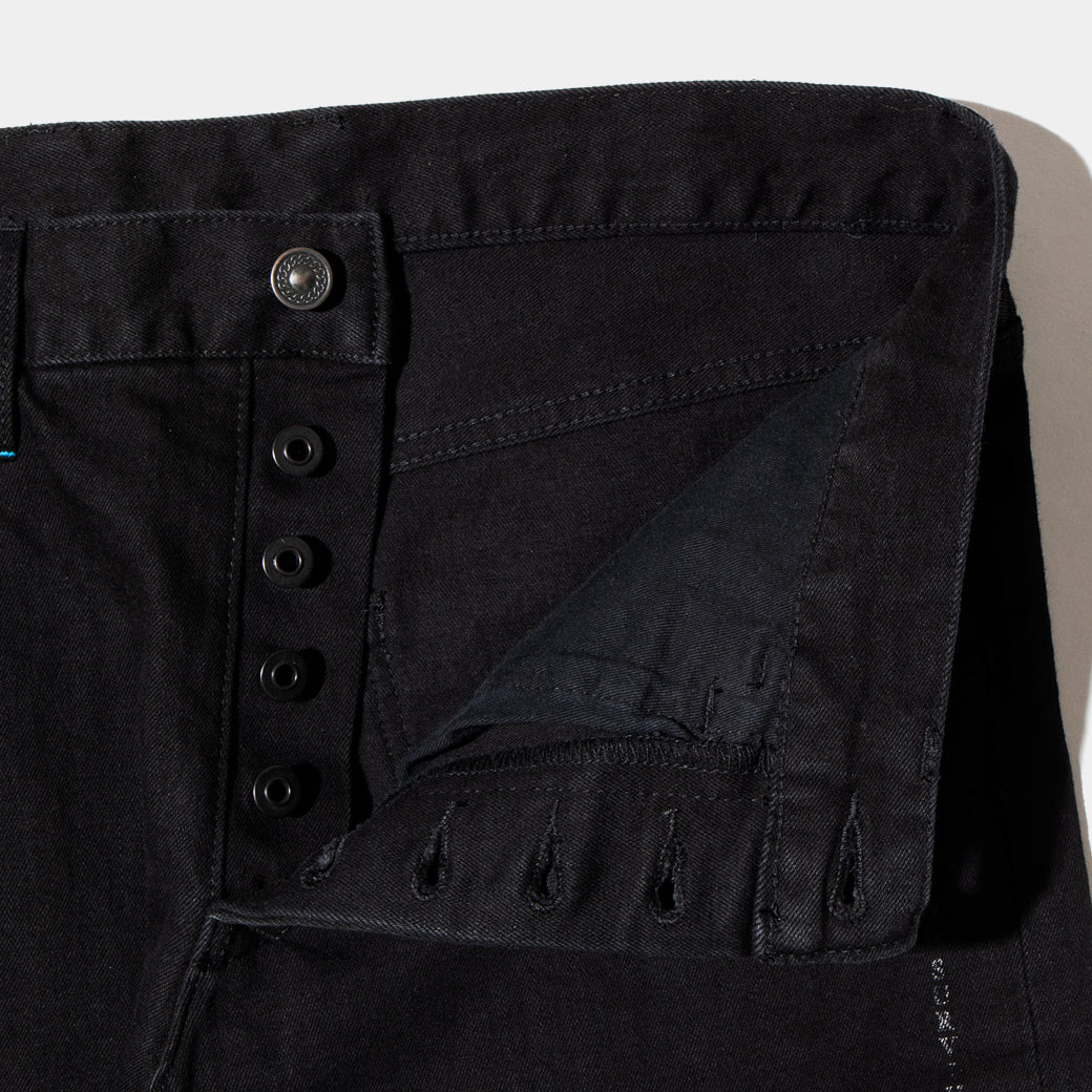 Black denim from the APPLEBUM standard denim "Kate" series that uses stretch material.
