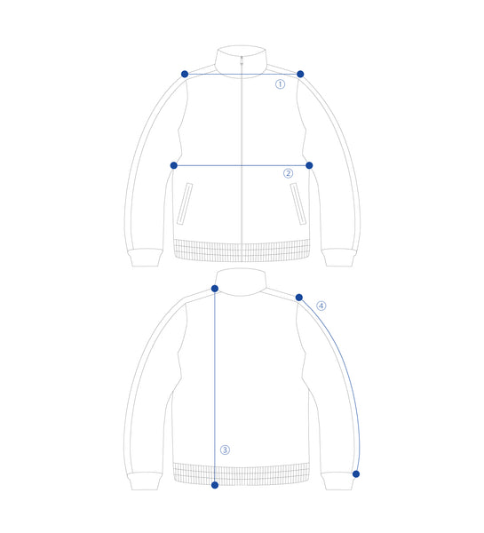 | ①Shoulder Width | ②Body Width | ③Length (SNP) | ④Sleeve Length | |