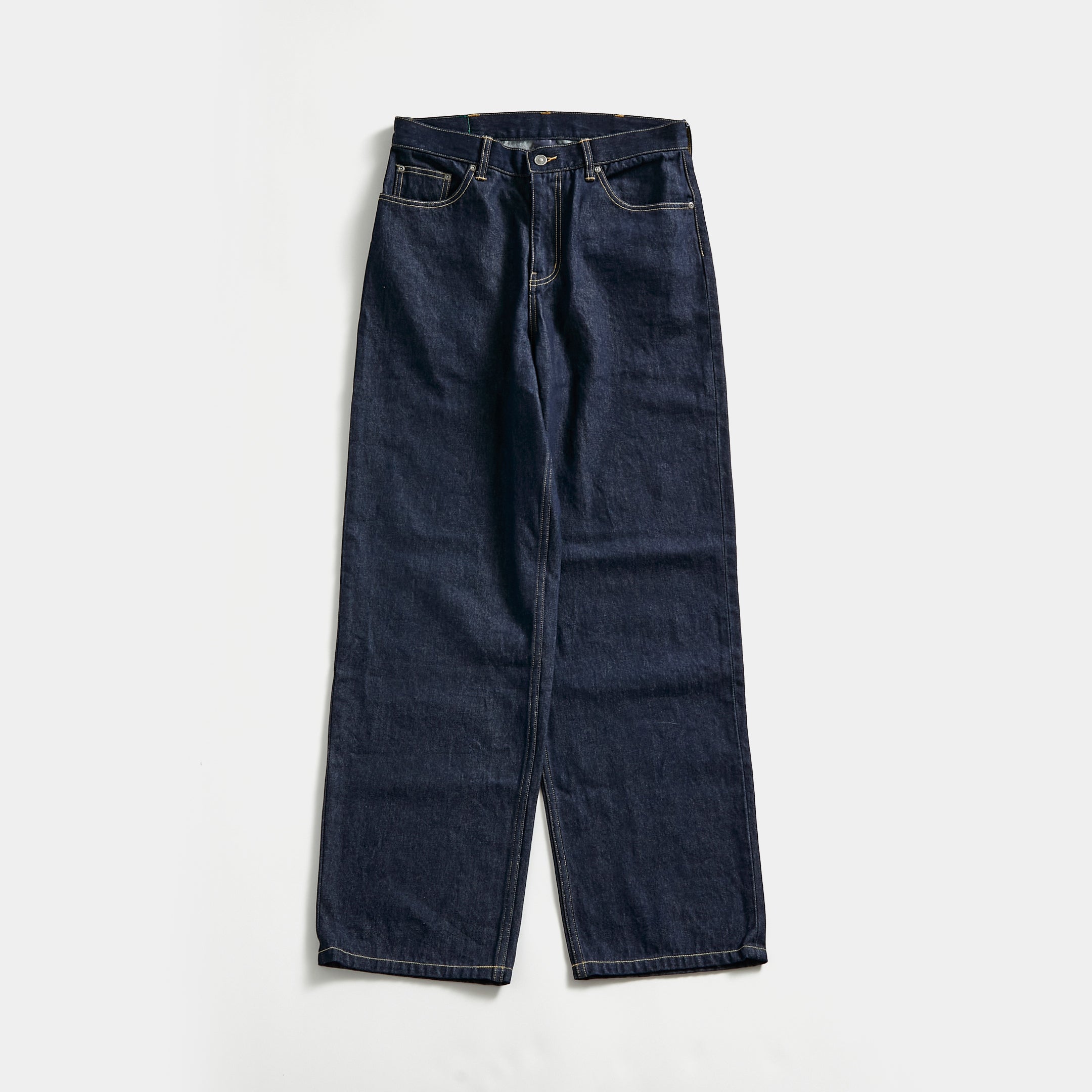 Denim pants with a wide straight silhouette.