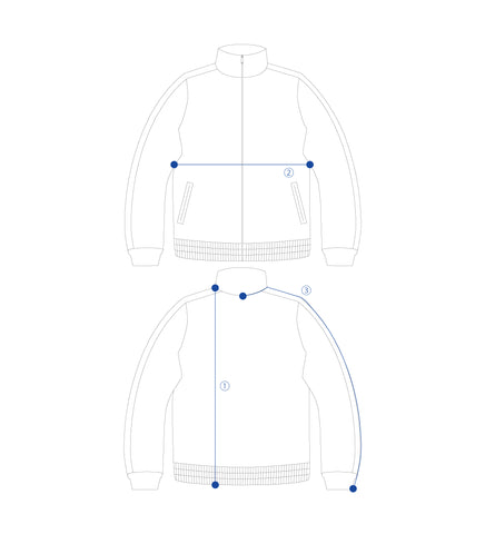 ② Chest width ① Length ③Sleeve length