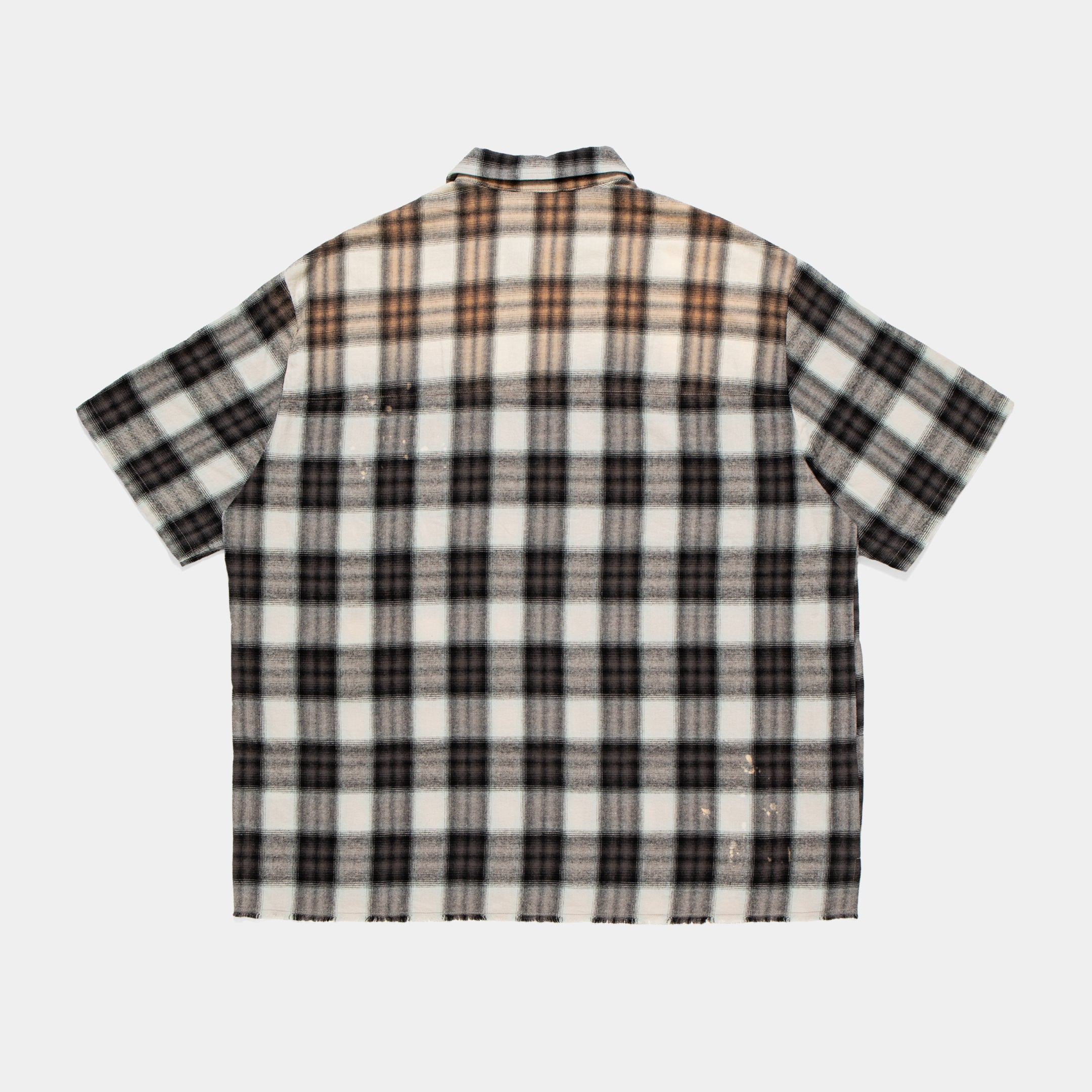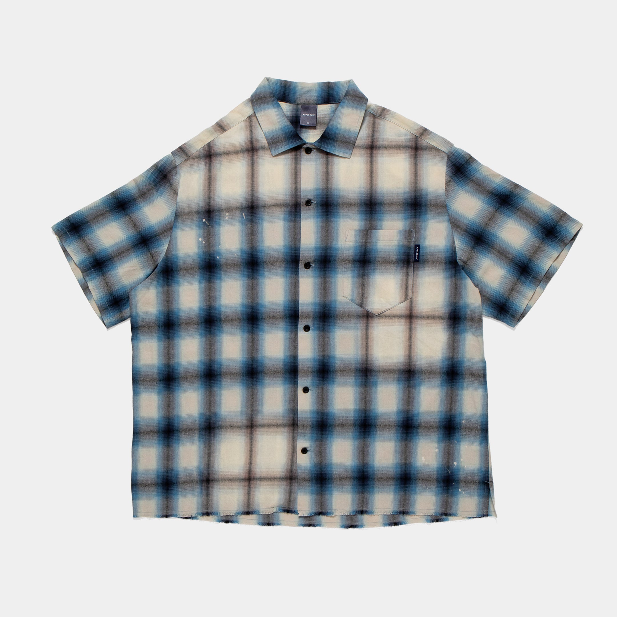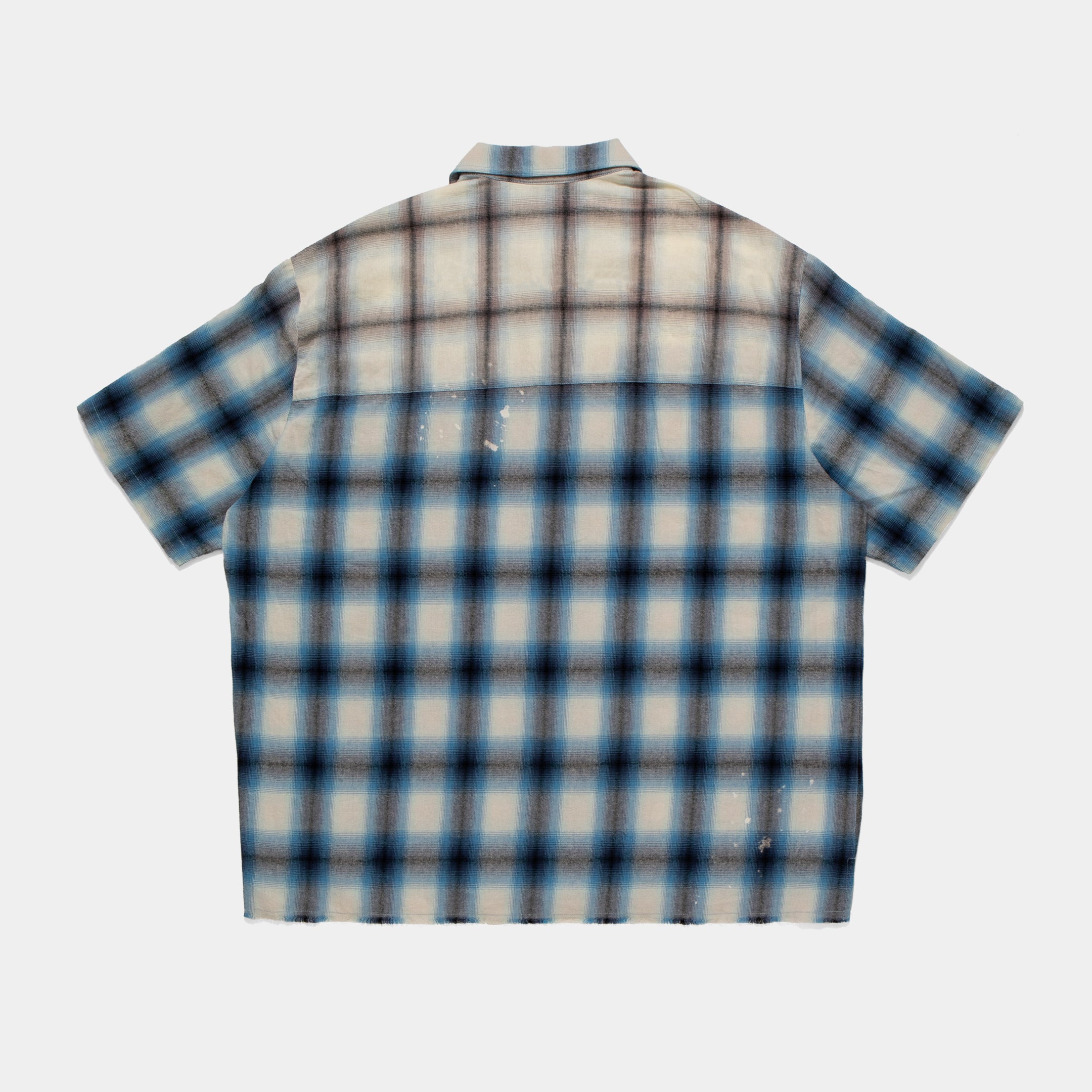 An ombre check open-collar shirt with a natural uneven texture reminiscent of vintage shirts.