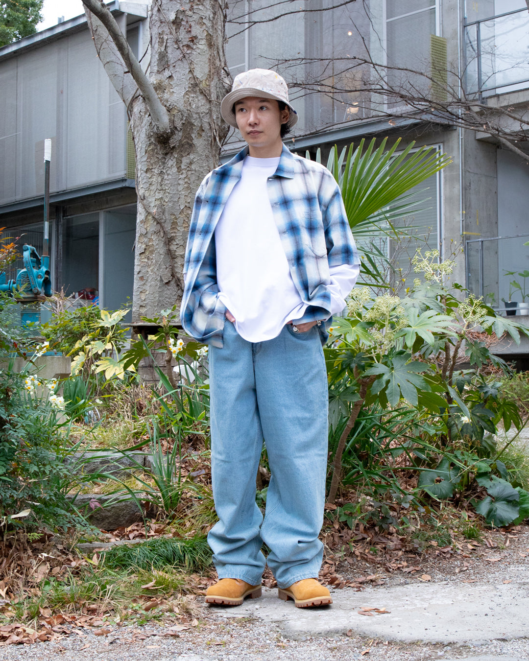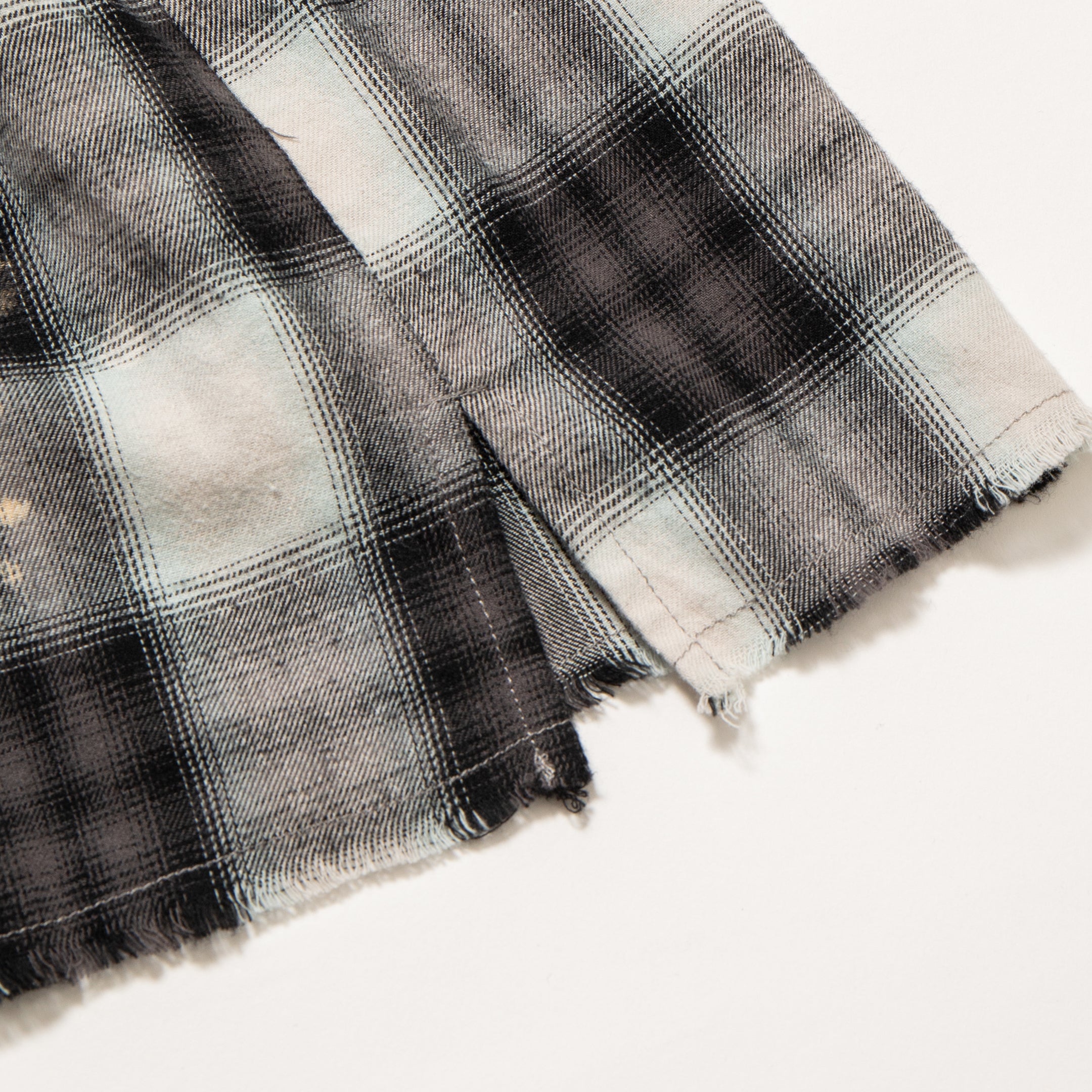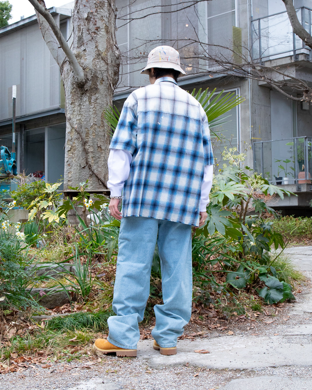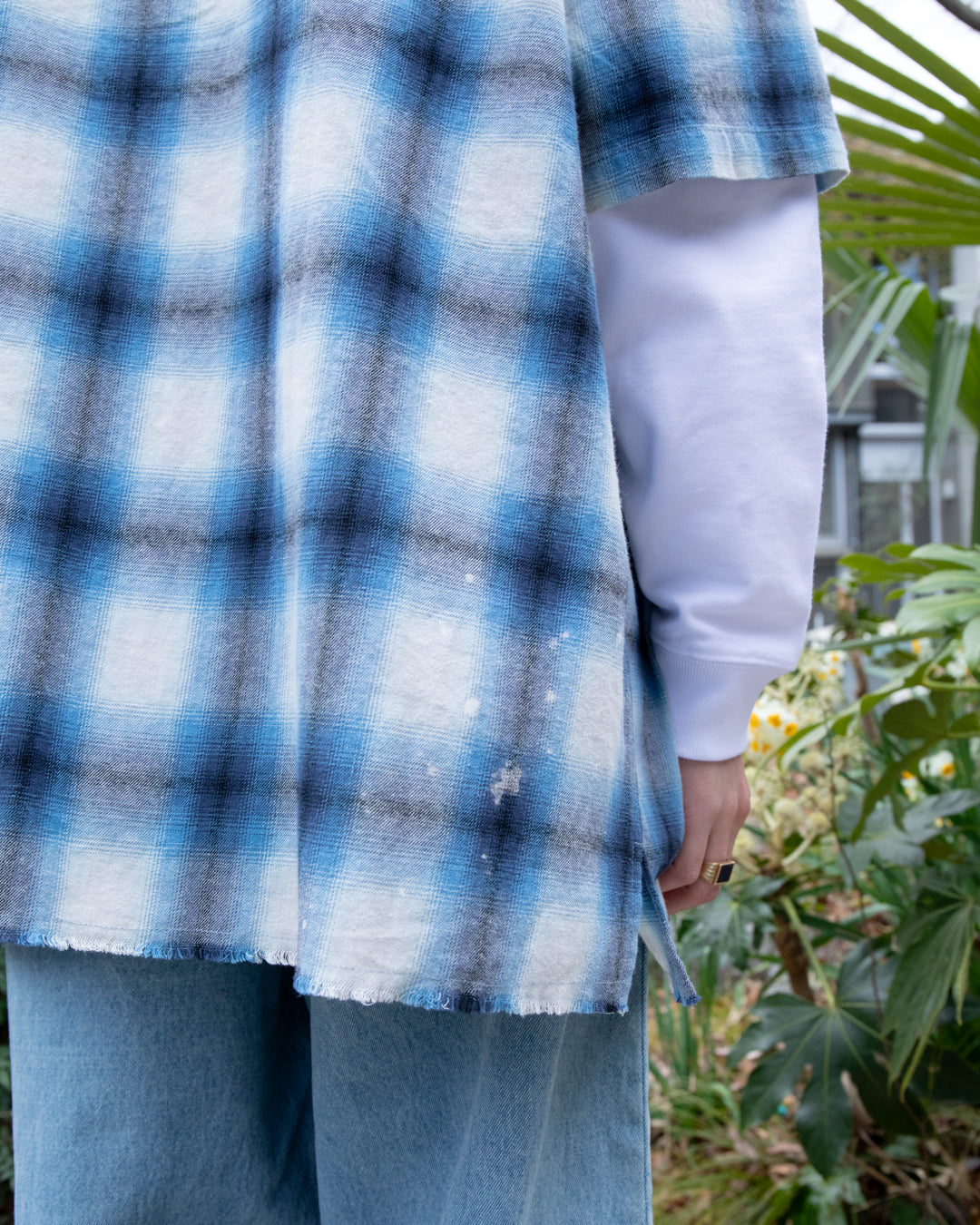 An ombre check open-collar shirt with a natural uneven texture reminiscent of vintage shirts.