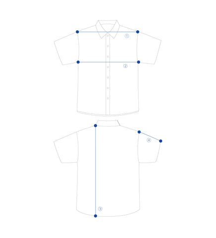 | ① Shoulder width | ② Chest width | ③Length | ④Sleeve length | |