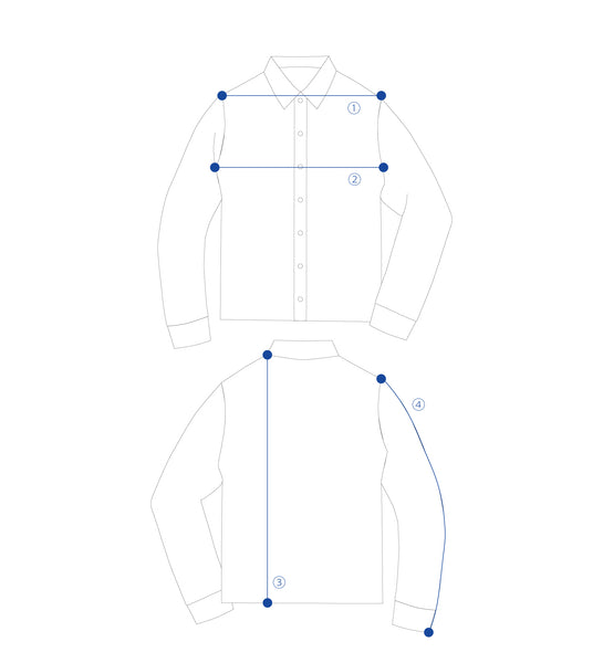 ① Shoulder width ② Chest width ③Length ④Sleeve length