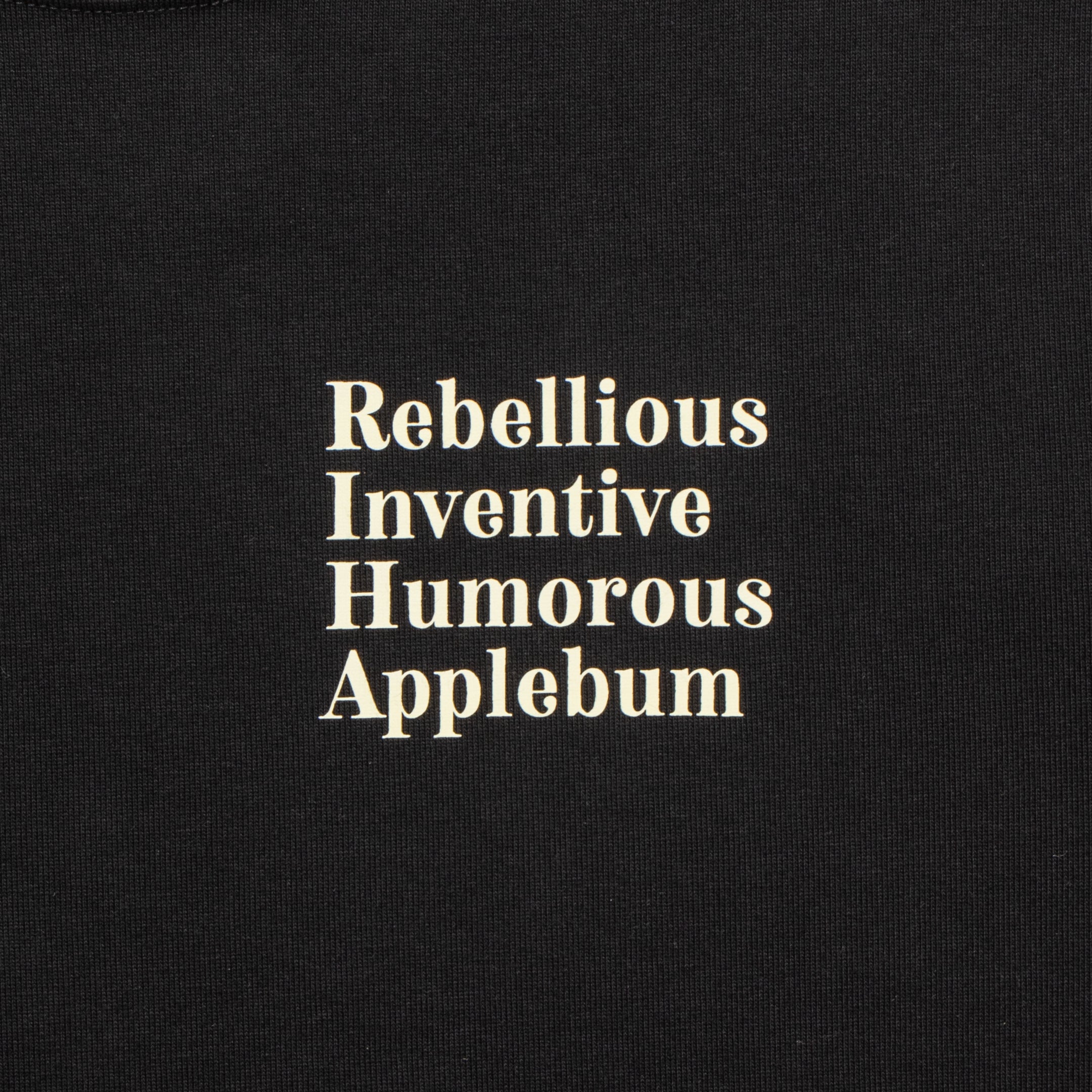 This T-shirt embodies APPLEBUM's philosophy on the left chest.