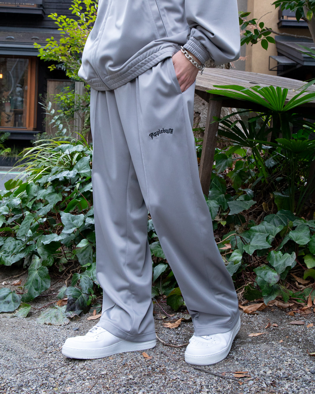 Track pants made from comfortable, subdued material.