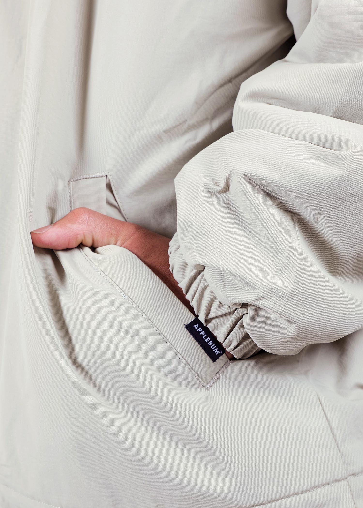 The boa fleece side offers warmth, while the nylon twill side gives a smooth and clean impression.