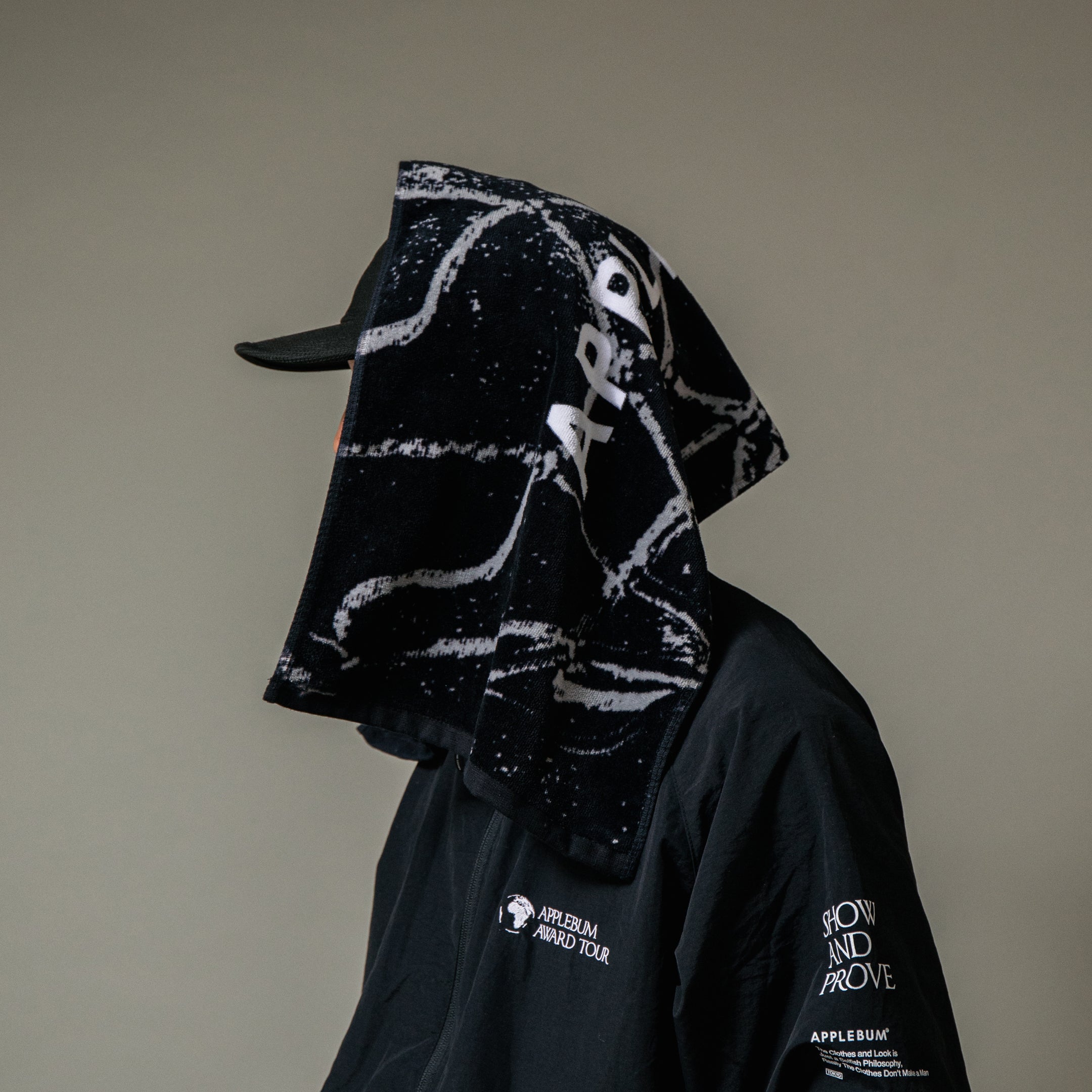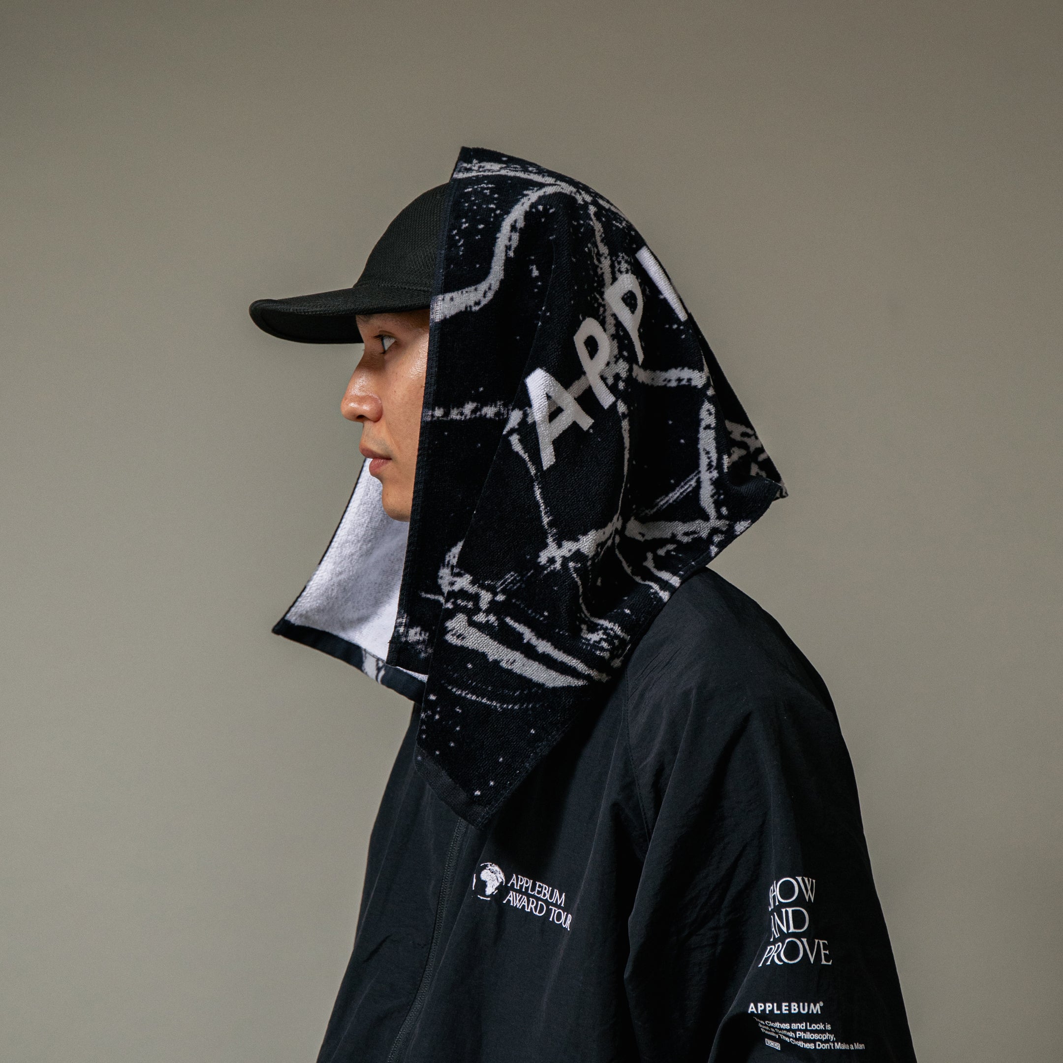 A sports towel featuring a basketball goal net and the APPLEBUM logo.