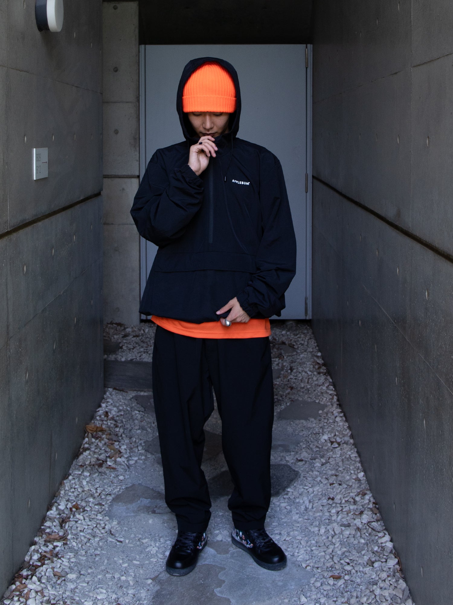 A simple nylon anorak parka that can be easily worn in early autumn.