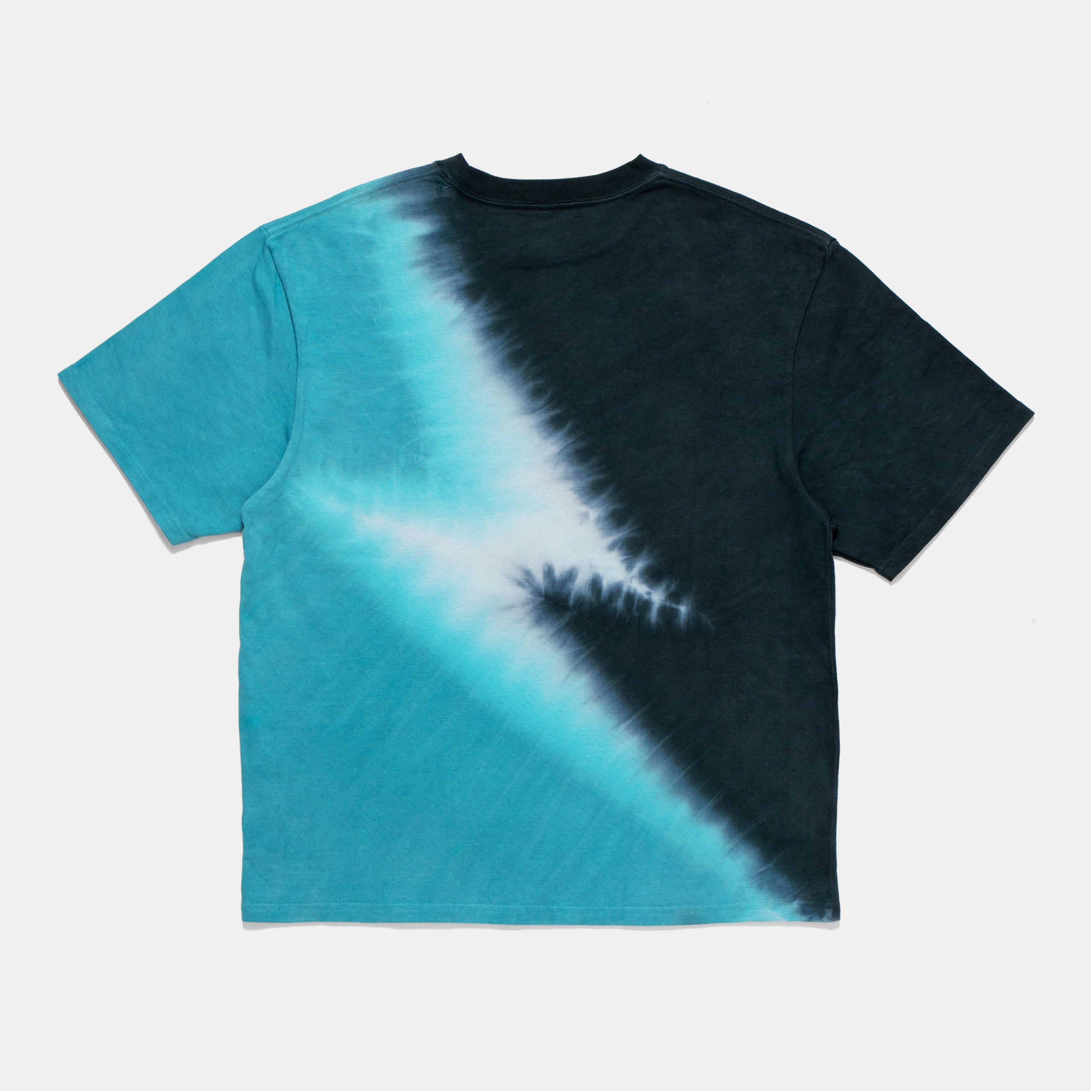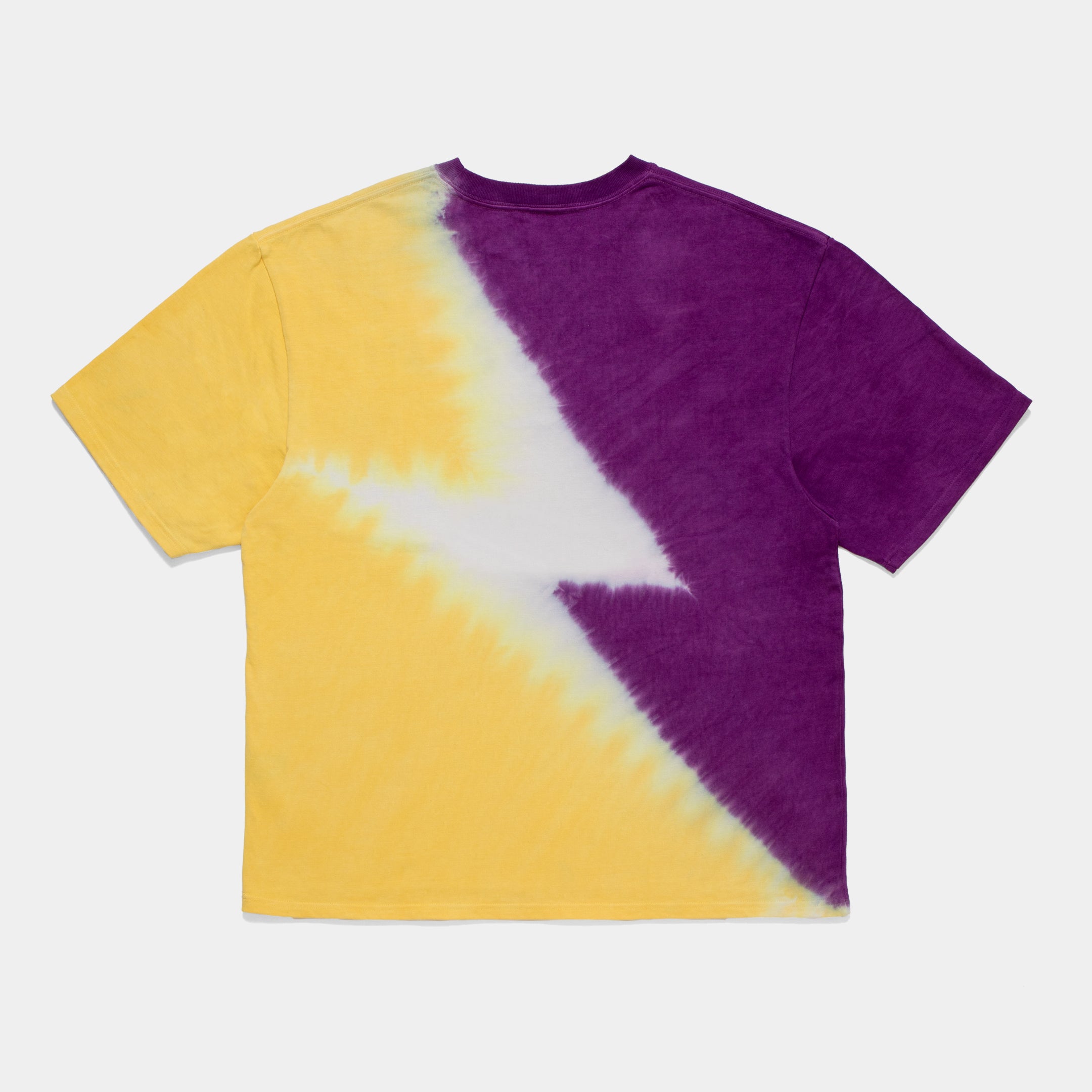 A T-shirt with a lightning bolt pattern created using two colors of dye.